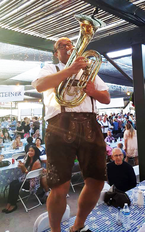 Our band, the Guggenbach-Buam, joins us from Baden-Württemberg, Germany. These talented, entertaining musicians dress in traditional clothing and play a variety of German music, just as you would hear in the beer gardens in Bavaria. Enjoy songs such as the chicken dance, polkas and waltzes, and all the famous beer-drinking tunes – new and old! Dance or sing along to some wonderful Oom-pah music!